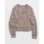 Aerie Happy Snit Henley T-Shirt – Heathered Taupe