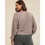 Real Good Everyday yarnRolled necklineRibbed trim on cuffs and hemPointelle deets and split cuffs on the sleevesThis style is heathered