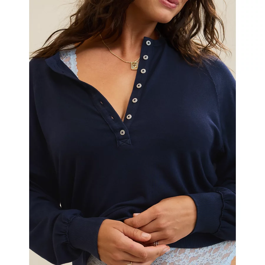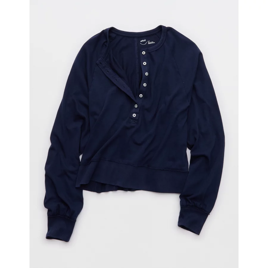 Aerie Happy Snit Henley T-Shirt – Navy