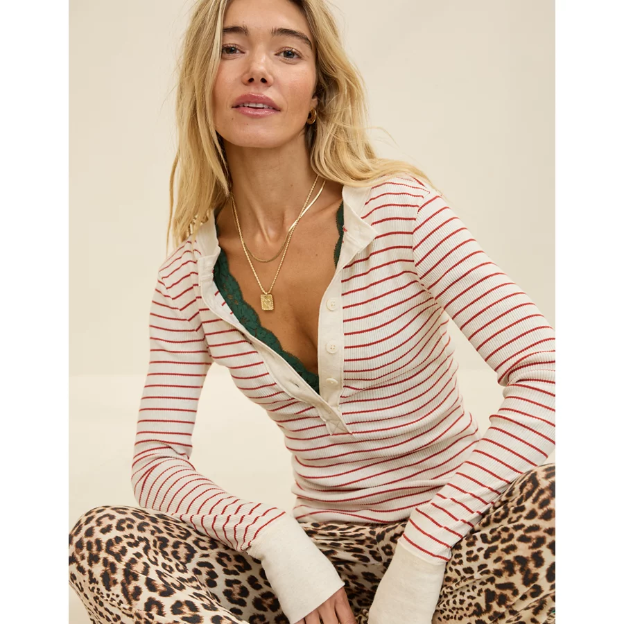 Aerie Henley Essential Layering T-Shirt – Heather Frost