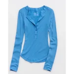 Aerie Henley Essential Layering T-Shirt – Sky Blue