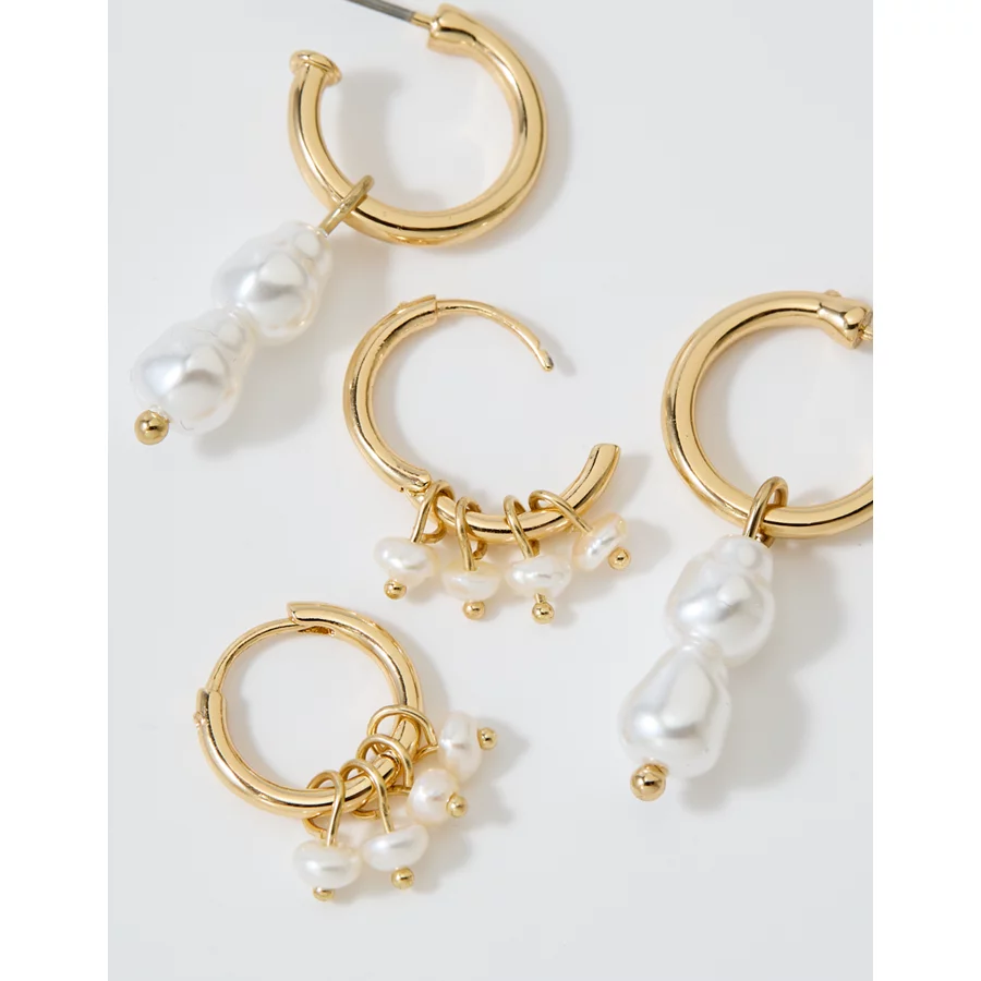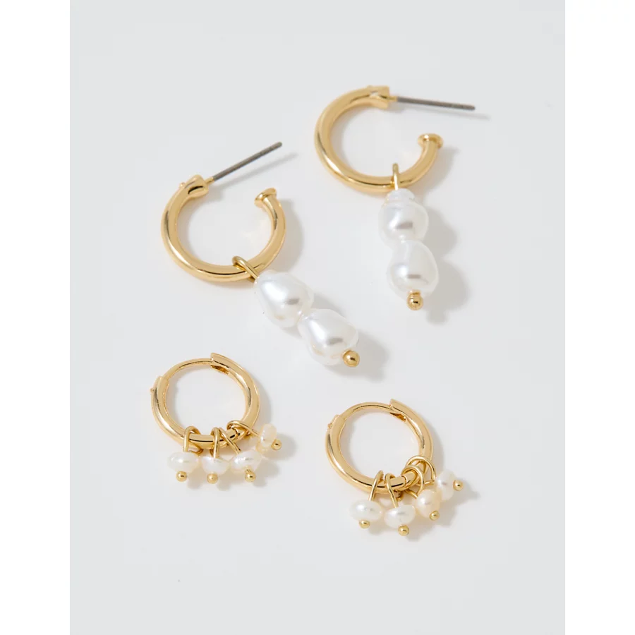 Aerie Hoop And Pearl Earrings 2-Pack – Gold