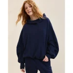 Real Good Everyday yarnRolled necklineRibbed trim on cuffs and hemPointelle deets and split cuffs on the sleevesStripedAccessibility deets: over-the-head access
