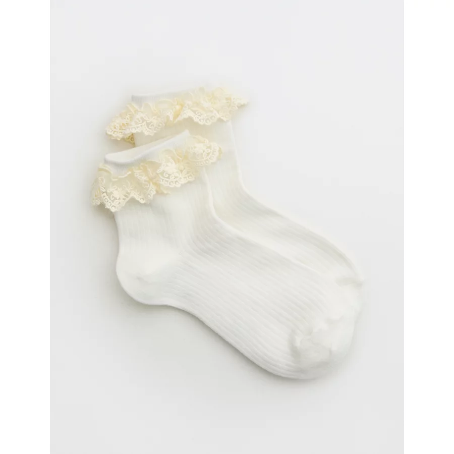 Aerie Lace Trim Quarter Socks – Soft Muslin