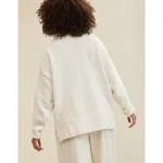 Real Good Everyday yarnRolled necklineRibbed trim on cuffs and hemPointelle deets and split cuffs on the sleevesStripedAccessibility deets: over-the-head access