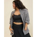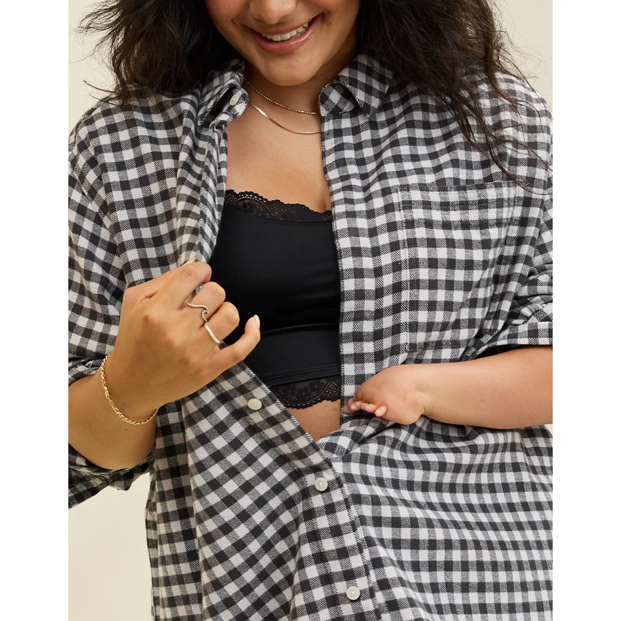 Soft, cozy flannel with a fun plaid printOversized chest pocket (for ALL your sunshine)Functional buttons 100% CottonMachine washImported Oversized and
