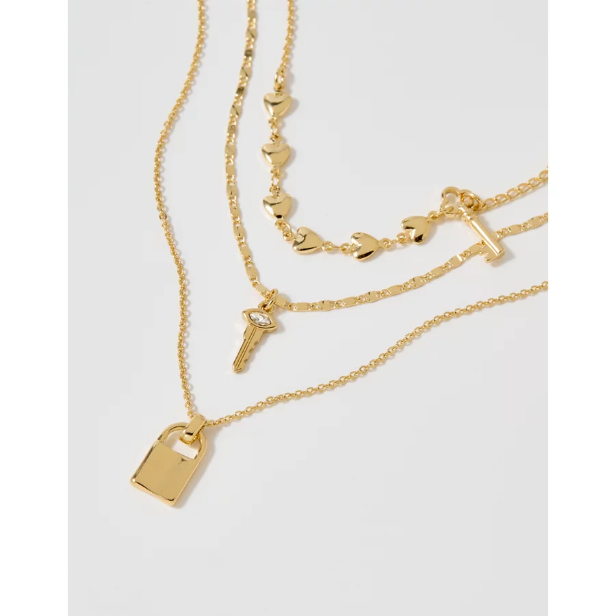 Aerie Mixed Metal Lock And Key Necklace – Multi