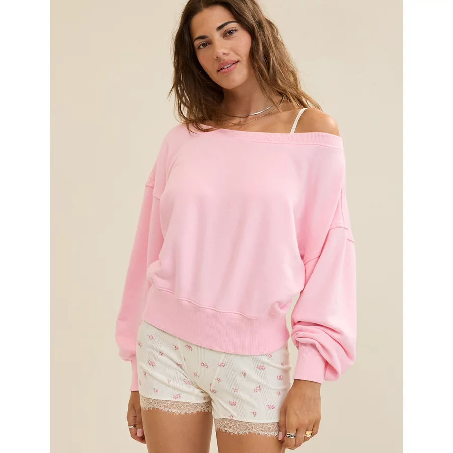 Aerie Off The Shoulder Sweatshirt – Club Pink