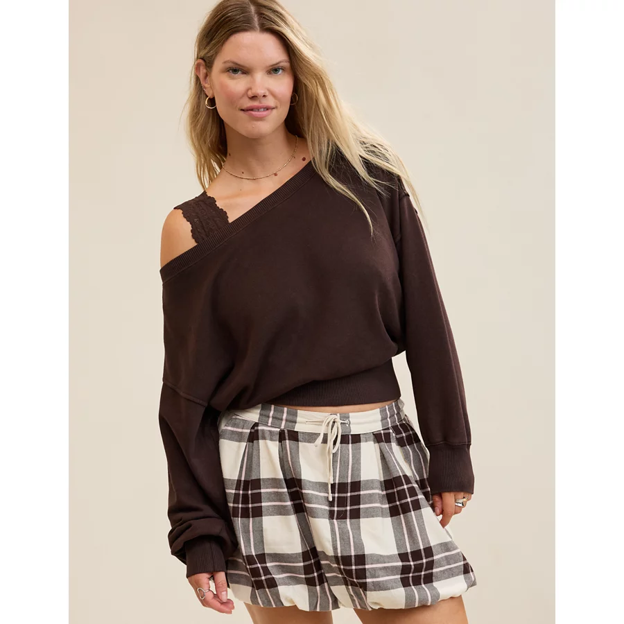 Aerie Off The Shoulder Sweatshirt – Deep Earth