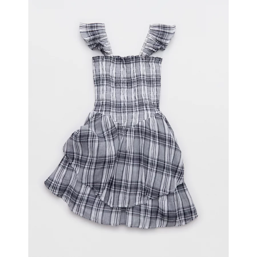 Aerie Plaid Handkerchief Mini Dress - Olive Fun