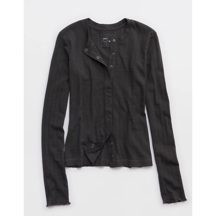 Aerie Pointelle Cardi T-Shirt – Smoked Gray