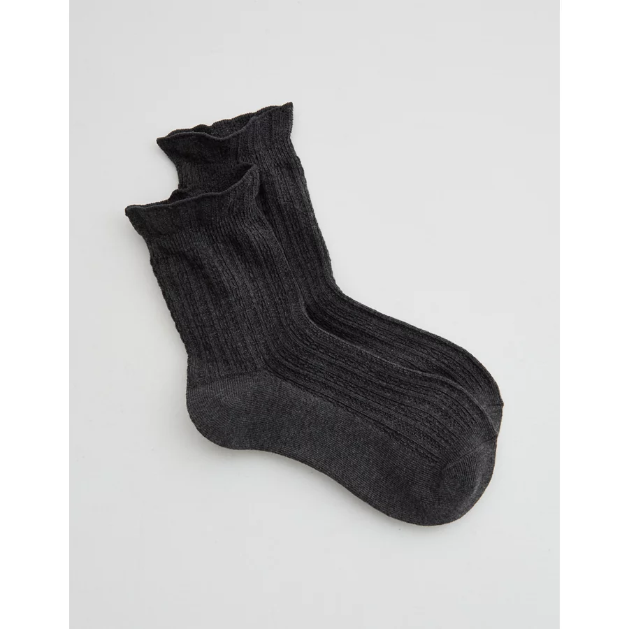 Aerie Pointelle Ruffle Edge Quarter Socks – Grey Shadow