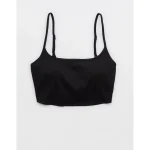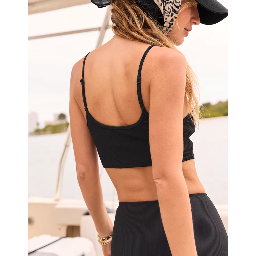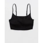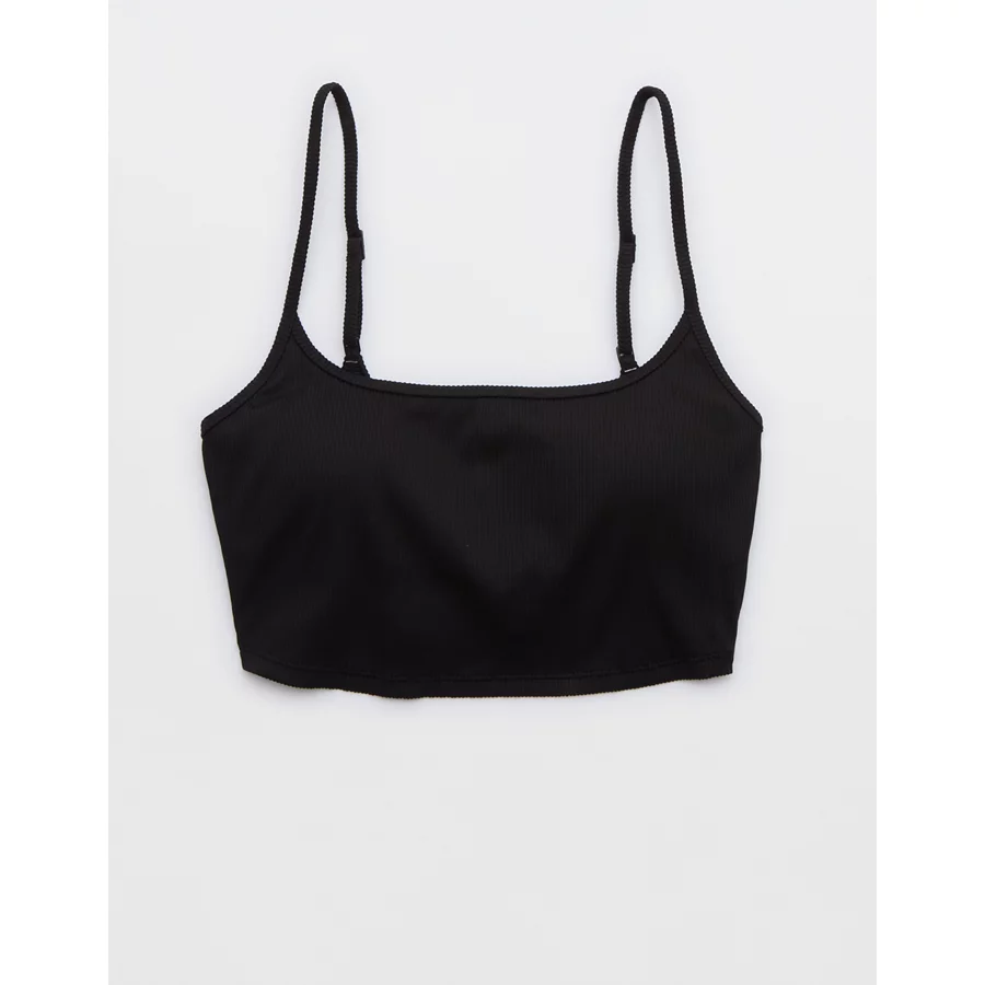 Aerie Ribbed Scoop Longline Bikini Top – True Black