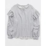 Aerie Ruffle Sleeve Sweatshirt – Medium Heather Gray