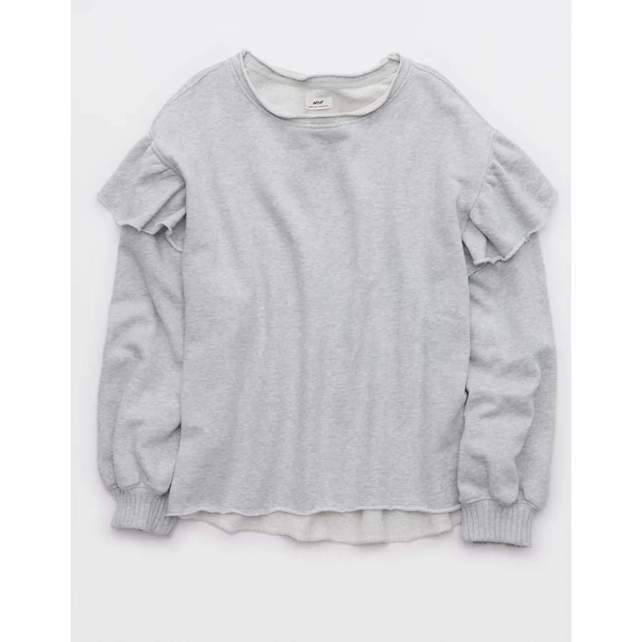 Aerie Ruffle Sleeve Sweatshirt - Heather Frost