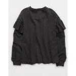 Aerie Ruffle Sleeve Sweatshirt – Smoked Gray