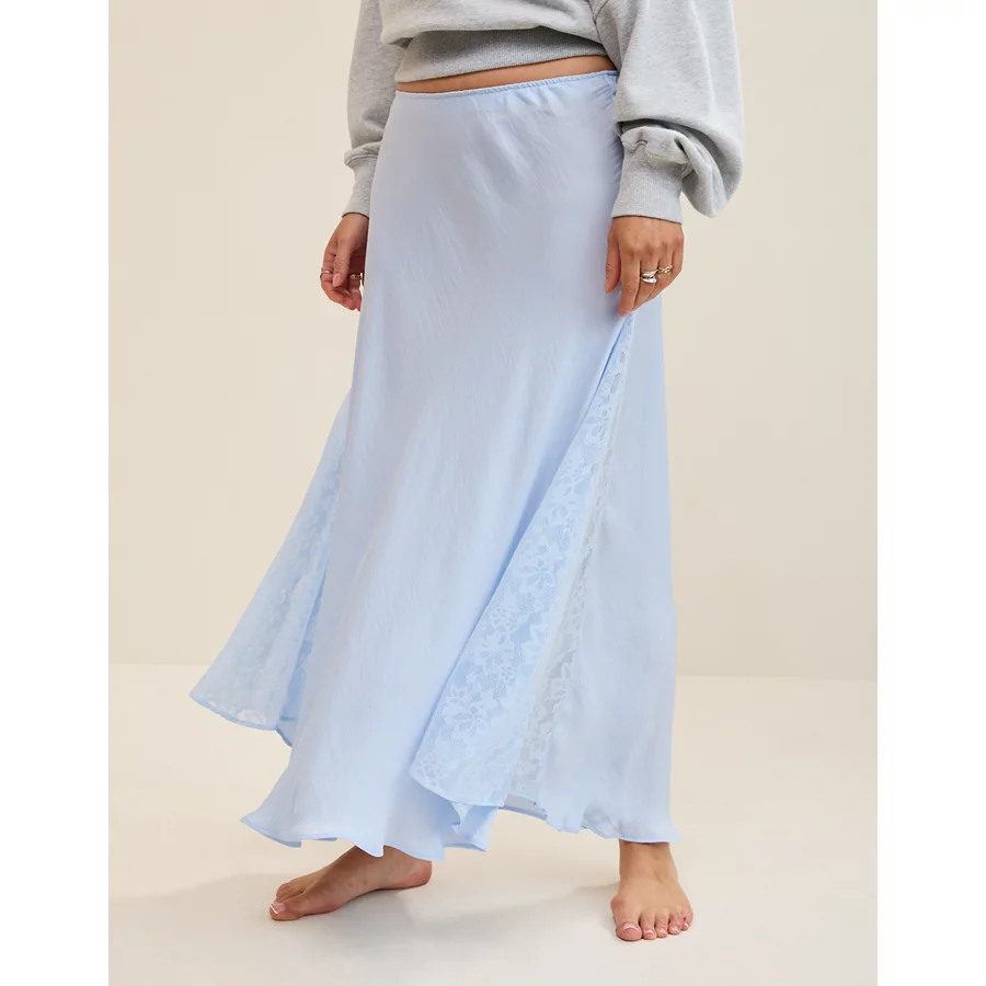 Aerie Satin Maxi Skirt – Eyelet Blue
