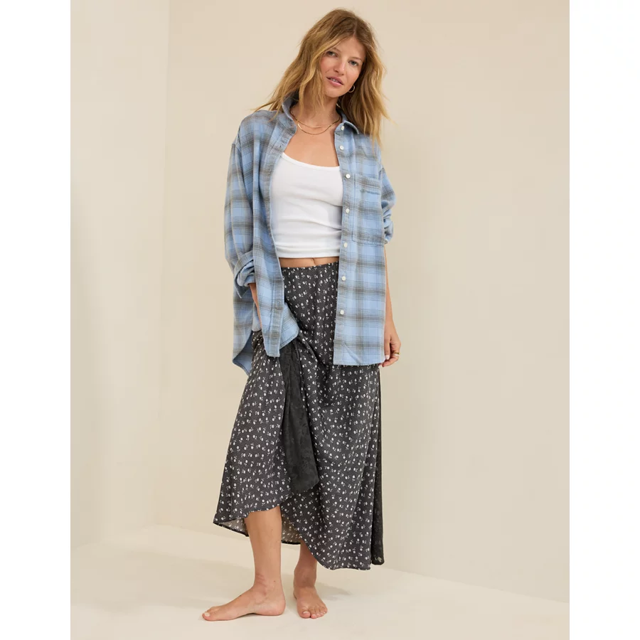 Soft, cozy flannel with a fun plaid printOversized chest pocket (for ALL your sunshine)Functional buttons 100% CottonMachine washImported Oversized and