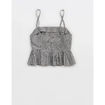 Aerie Seersucker Peplum Tank Top – Smoked Gray