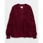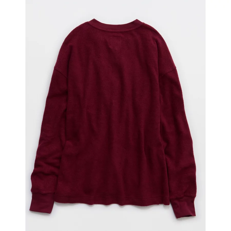 Aerie Sherpa Henley Sweatshirt – Deep Cherry