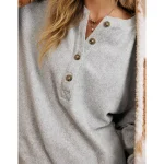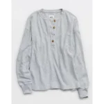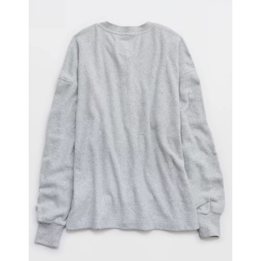 Aerie Sherpa Henley Sweatshirt – Medium Heather Gray