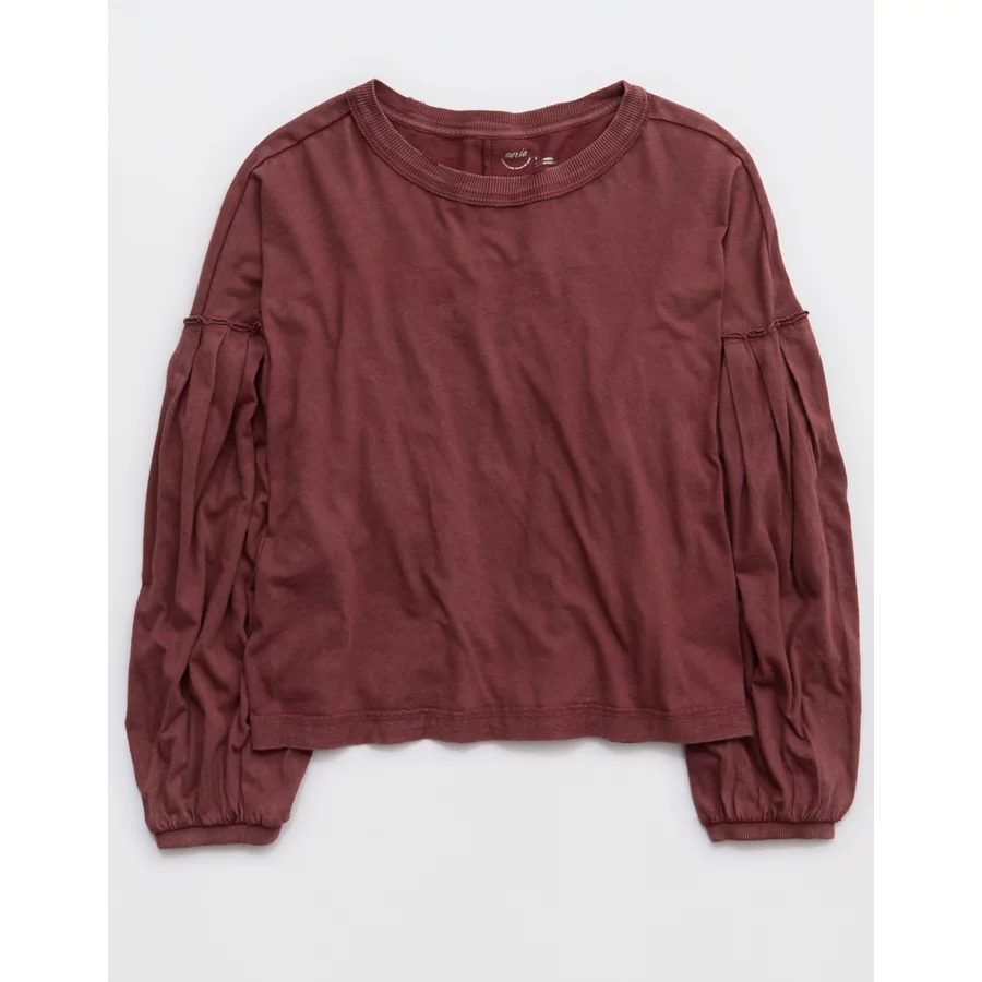 Aerie Slouchy Balloon Sleeve T-Shirt – Dark Rust