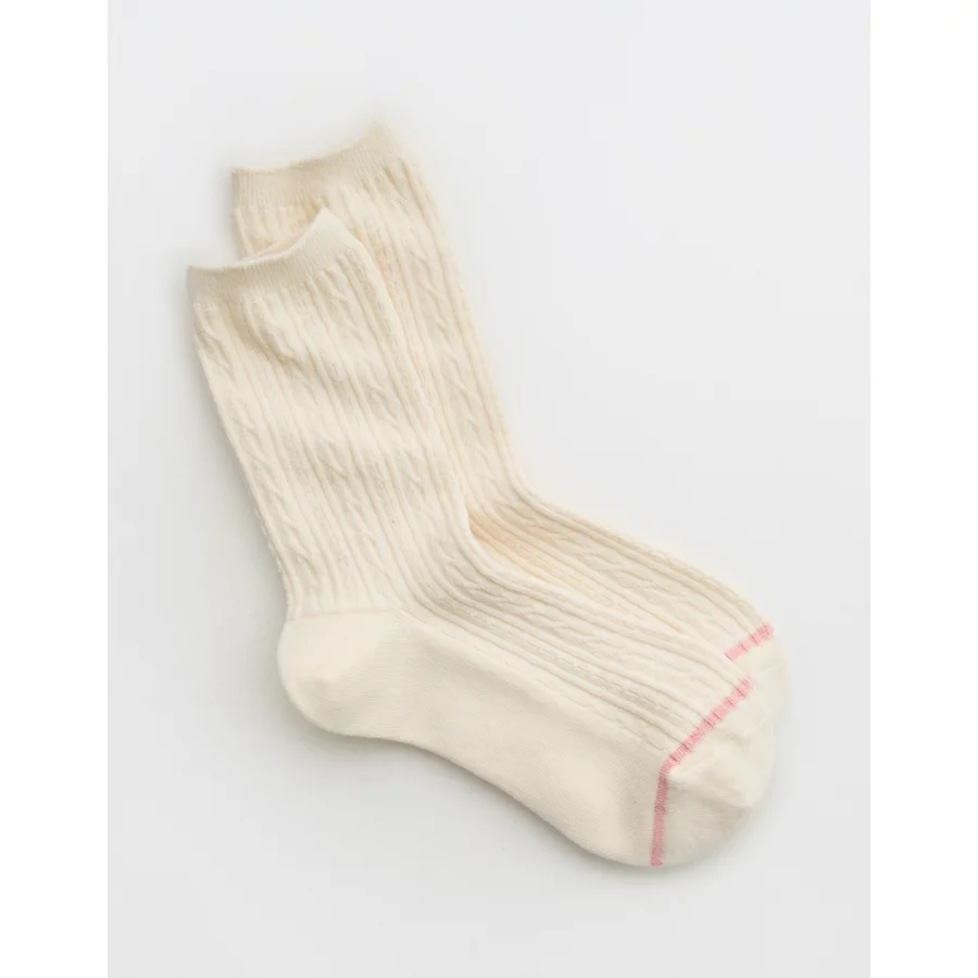 Aerie Solid Cable Crew Socks – Soft Muslin