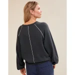 Real Good Everyday yarnRolled necklineRibbed trim on cuffs and hemPointelle deets and split cuffs on the sleevesStripedAccessibility deets: over-the-head access