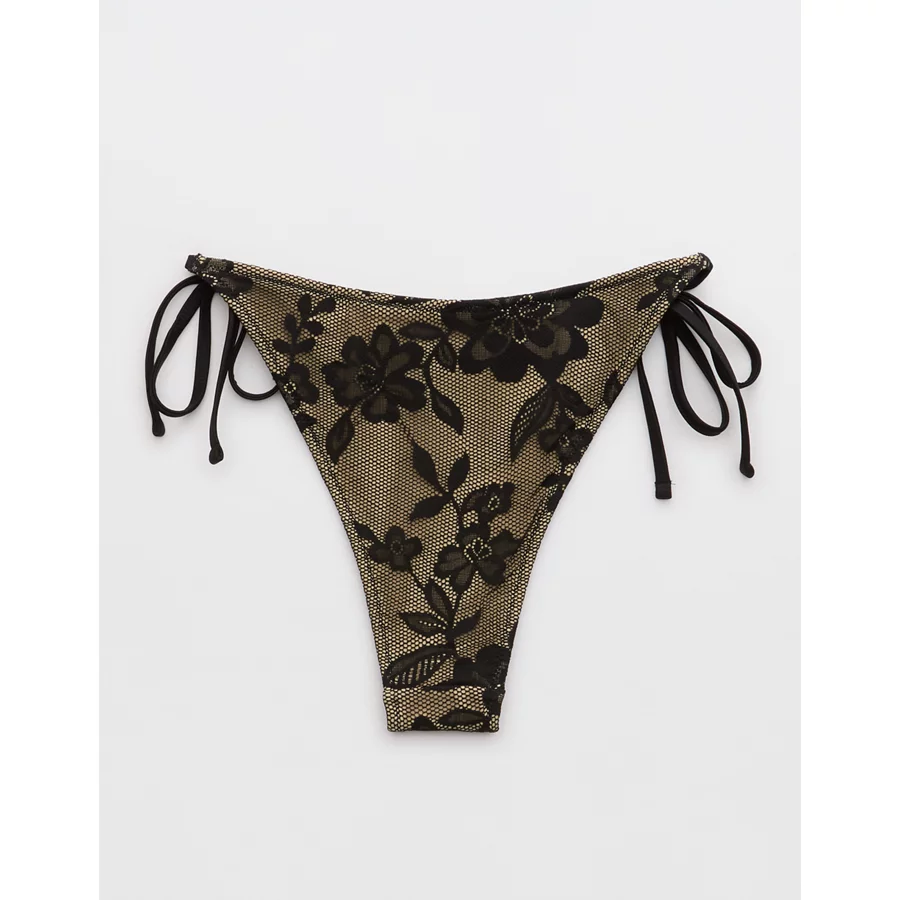 Aerie The Sunbun Lace Bikini Bottom – True Black
