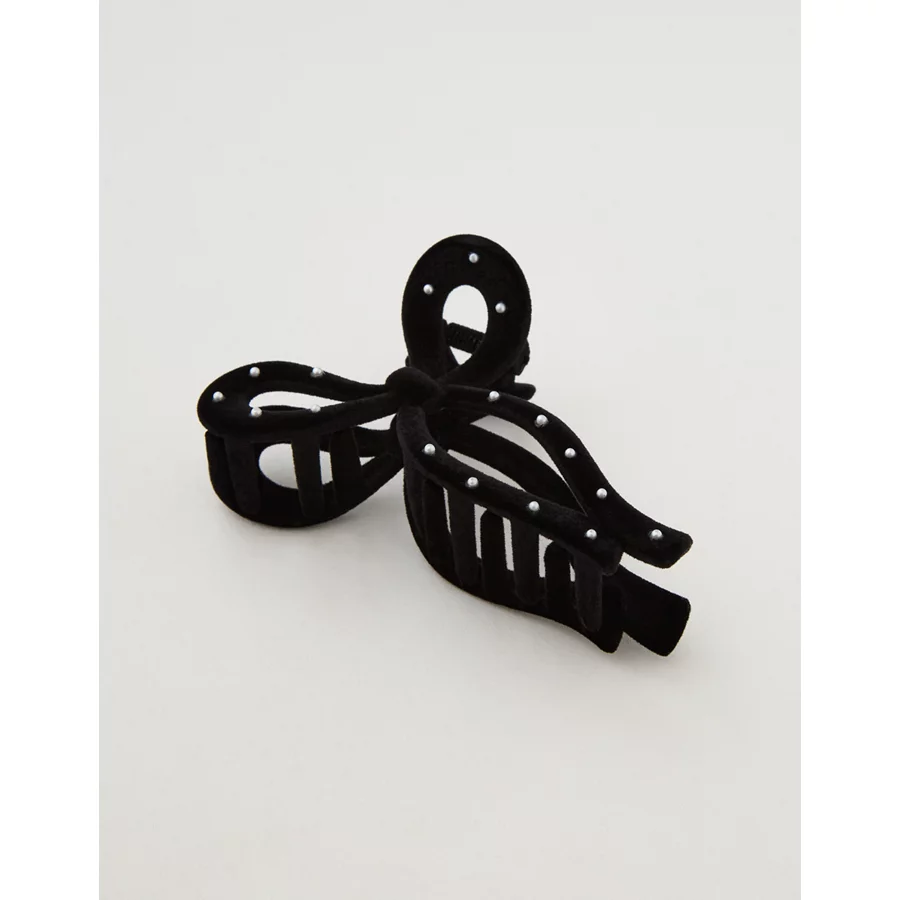 Aerie Velvet Bow Hair Clip – True Black