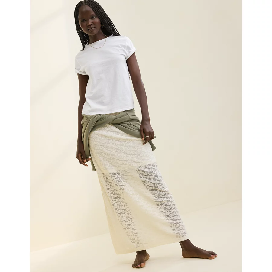 Aerie Vintage Lace Midi Skirt – Soft Muslin