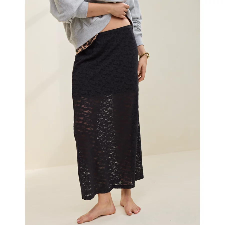 Aerie Vintage Lace Midi Skirt – True Black