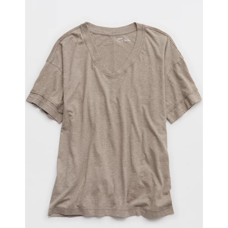 Aerie Voop Oversized Boyfriend T-Shirt – Heathered Taupe