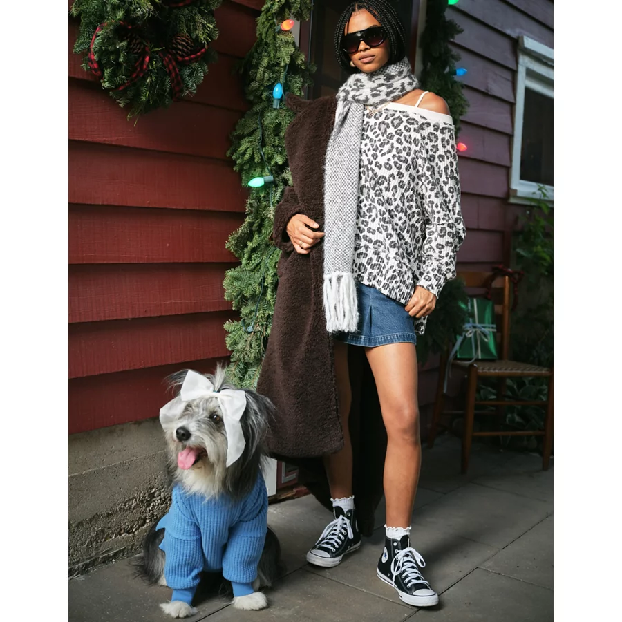 ABO Snoopy Skier Print Plush PJ Top – Blue