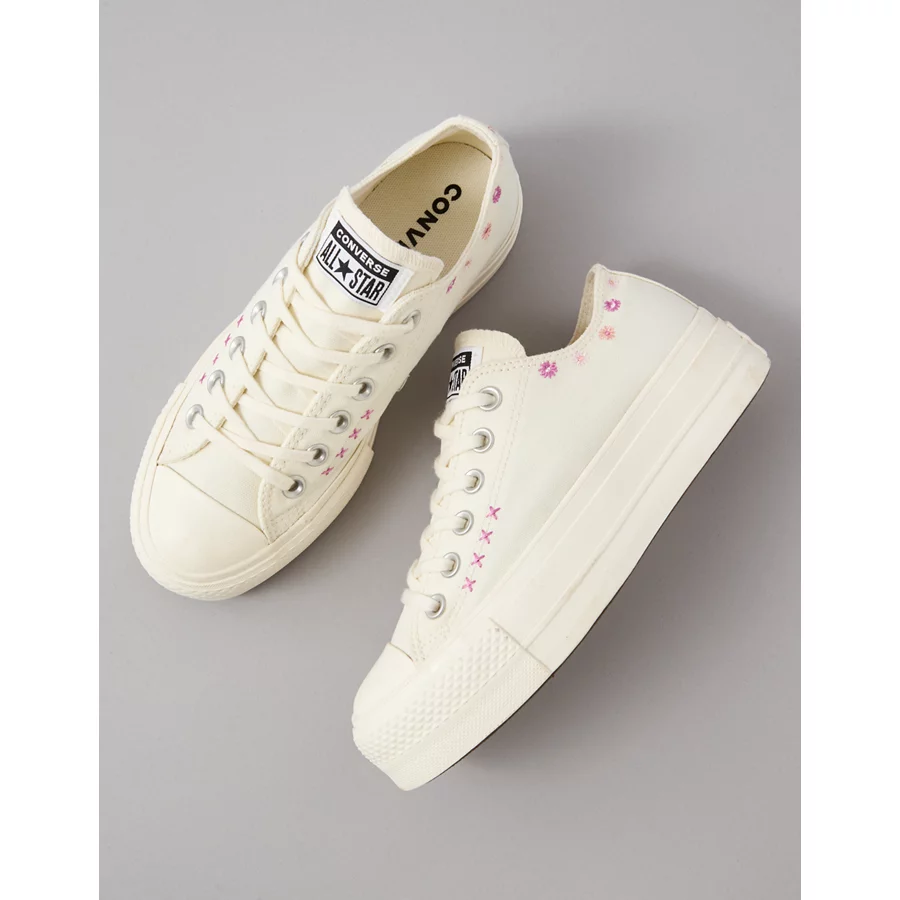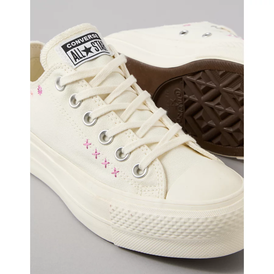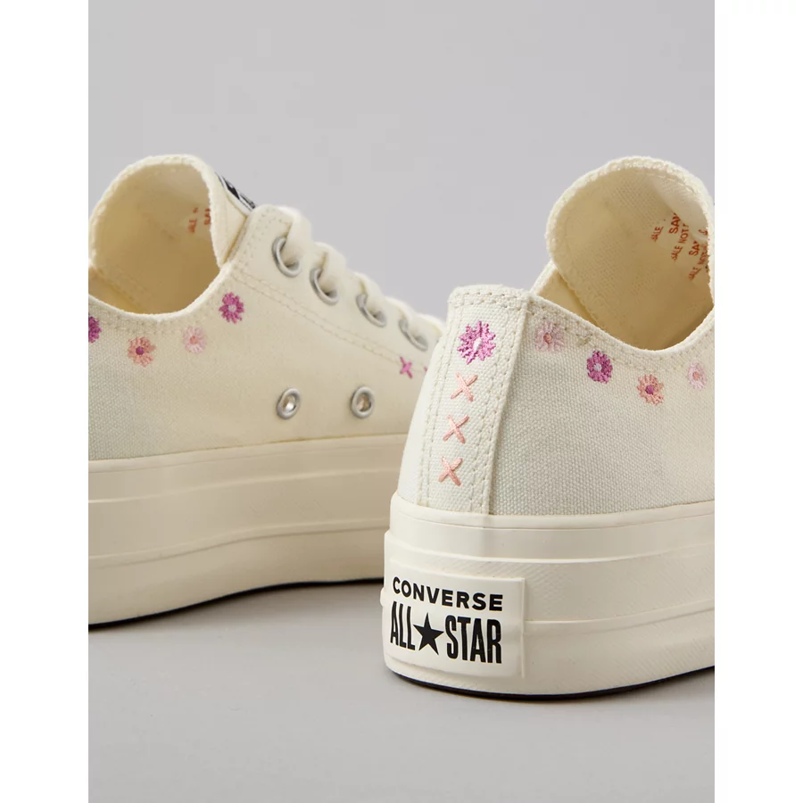Converse Chuck Taylor All Star Lift Platform Embroidered Flowers Low-Top Sneaker – White