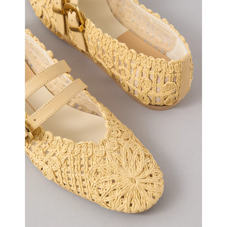 Woven raffia & leather upper