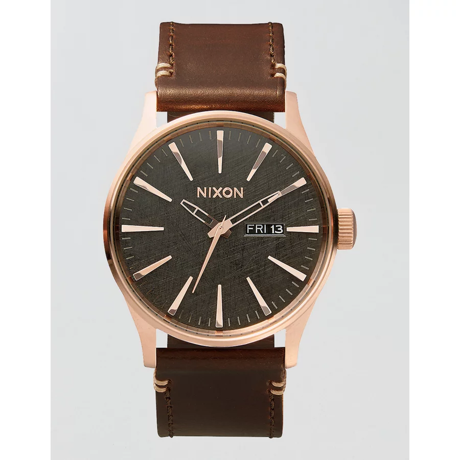 Nixon Sentry Leather Watch – Rose Gold
