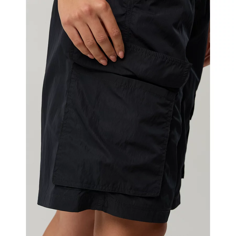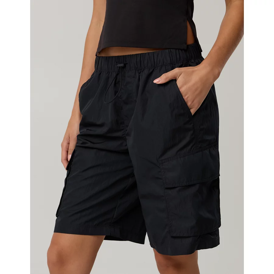 THE LOOK: Lightweight nylon fabric. Bungee cinch waistband.