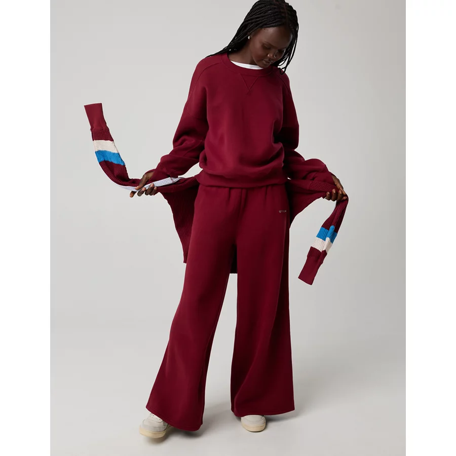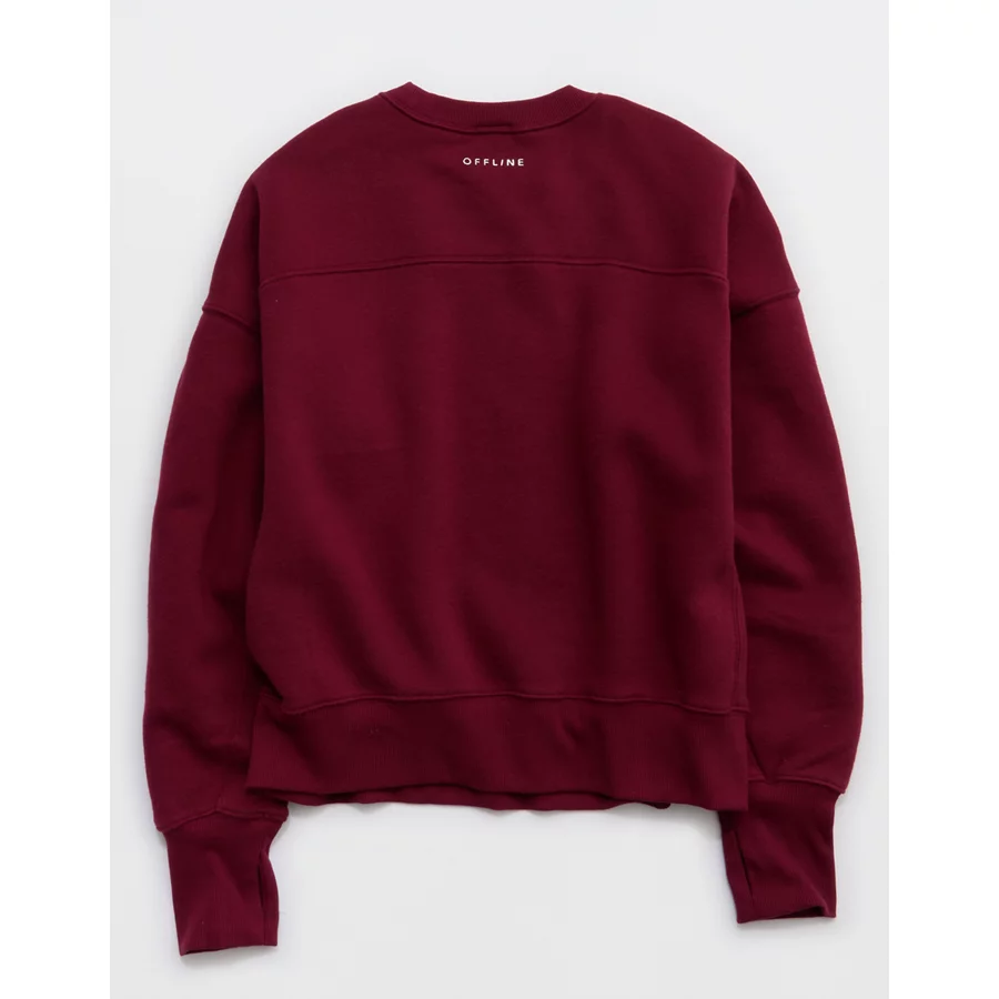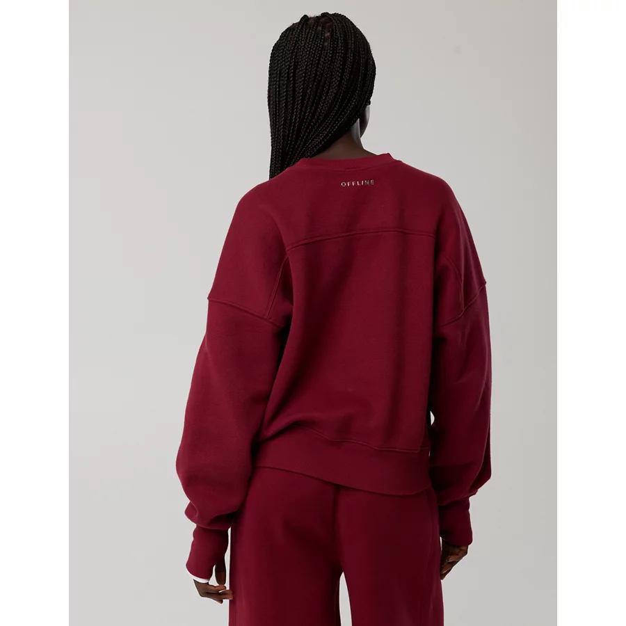 OFFLINE By Aerie Cloud Fleece Classic Crewneck Sweatshirt – Deep Cherry
