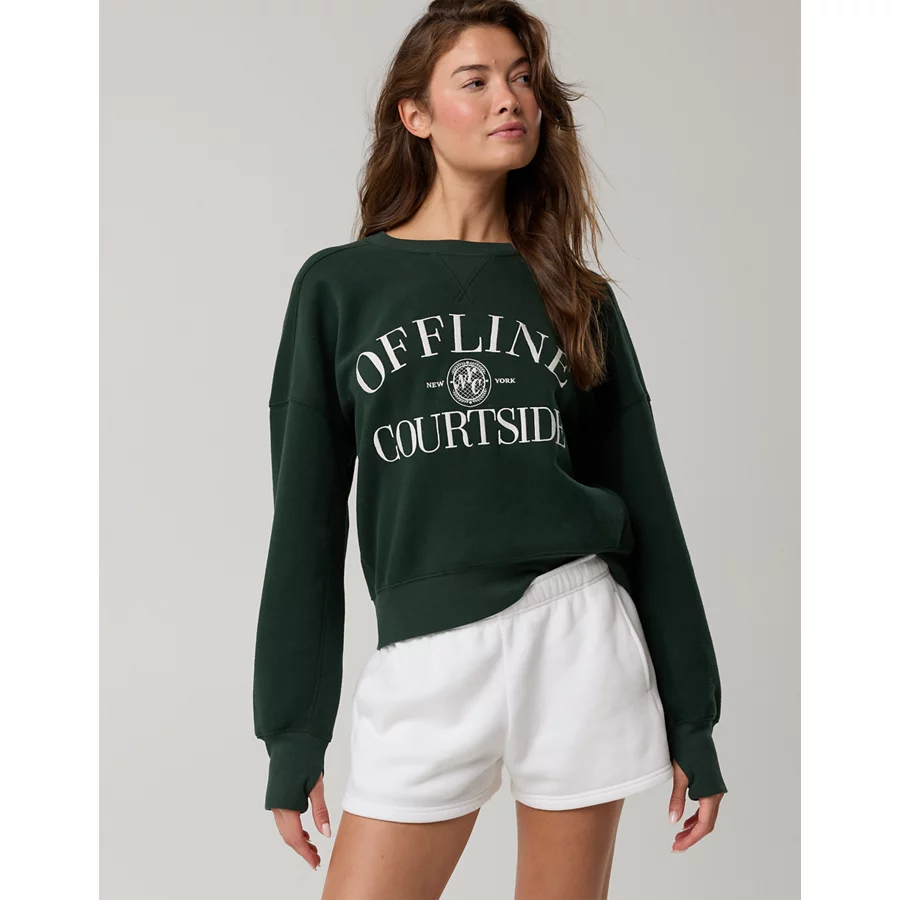 OFFLINE By Aerie Cloud Fleece Classic Crewneck Sweatshirt – Mystical Green