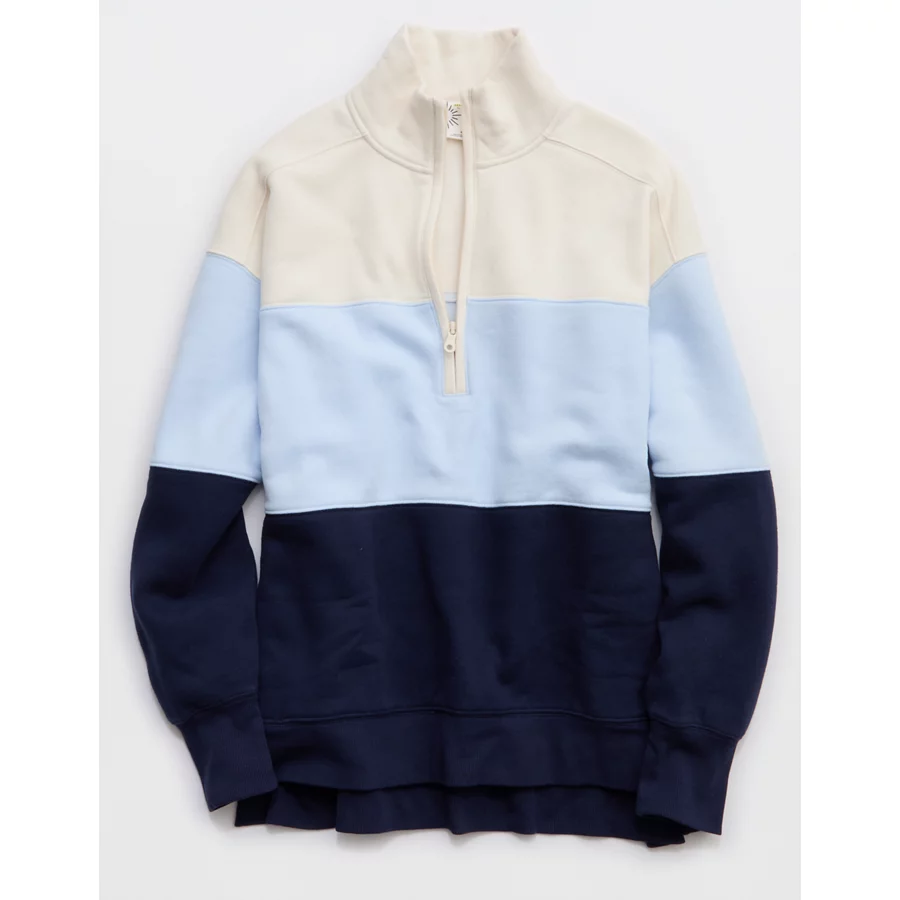 OFFLINE By Aerie Cloud Fleece Quarter Zip Sweatshirt – Eyelet Blue