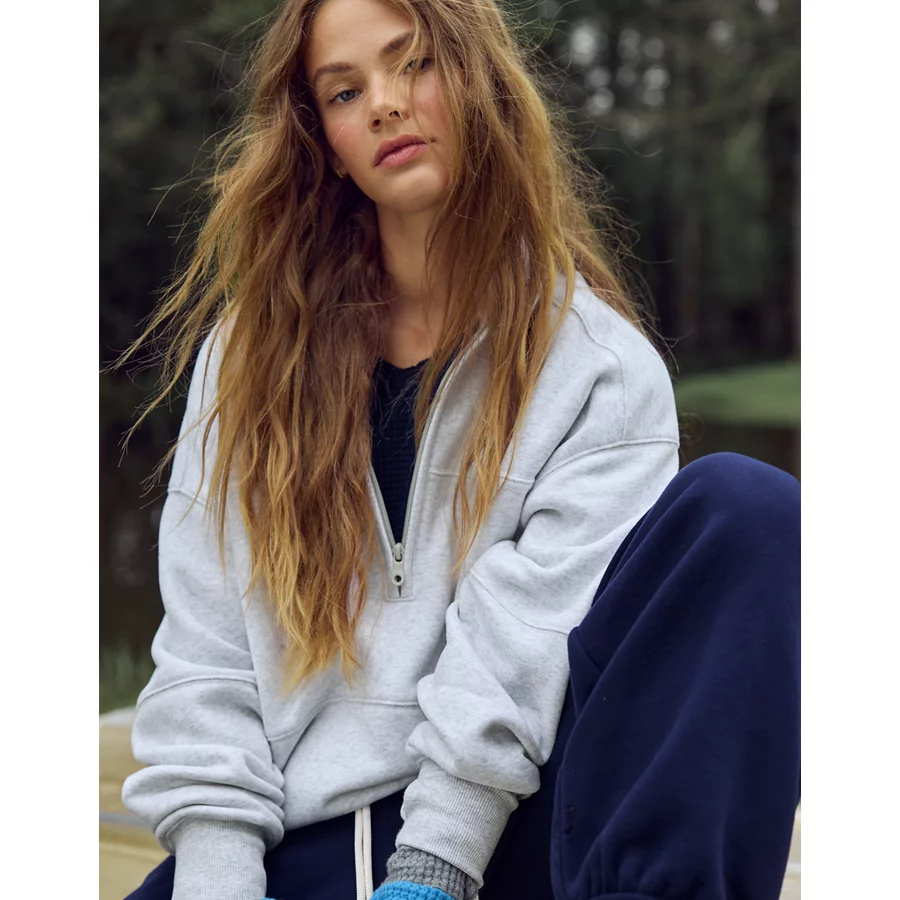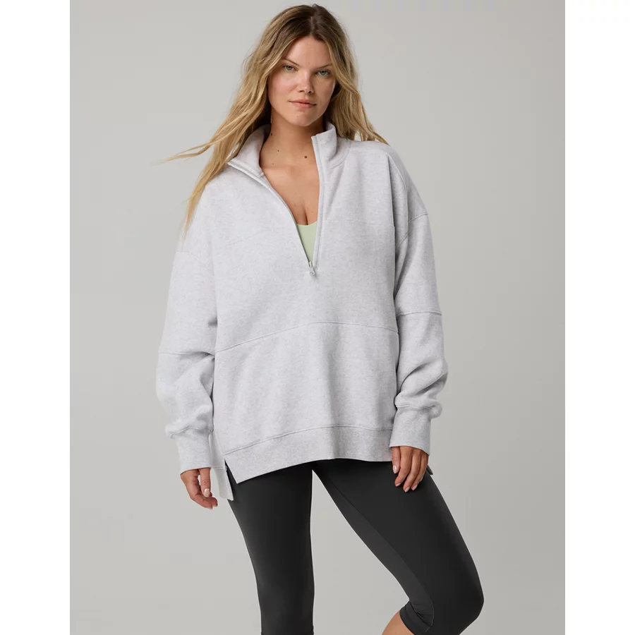OFFLINE By Aerie Cloud Fleece Quarter Zip Sweatshirt – Light Heather Gray