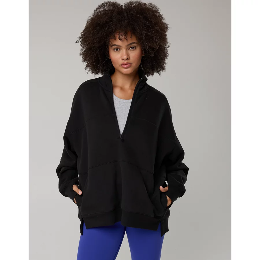 OFFLINE By Aerie Cloud Fleece Quarter Zip Sweatshirt – True Black