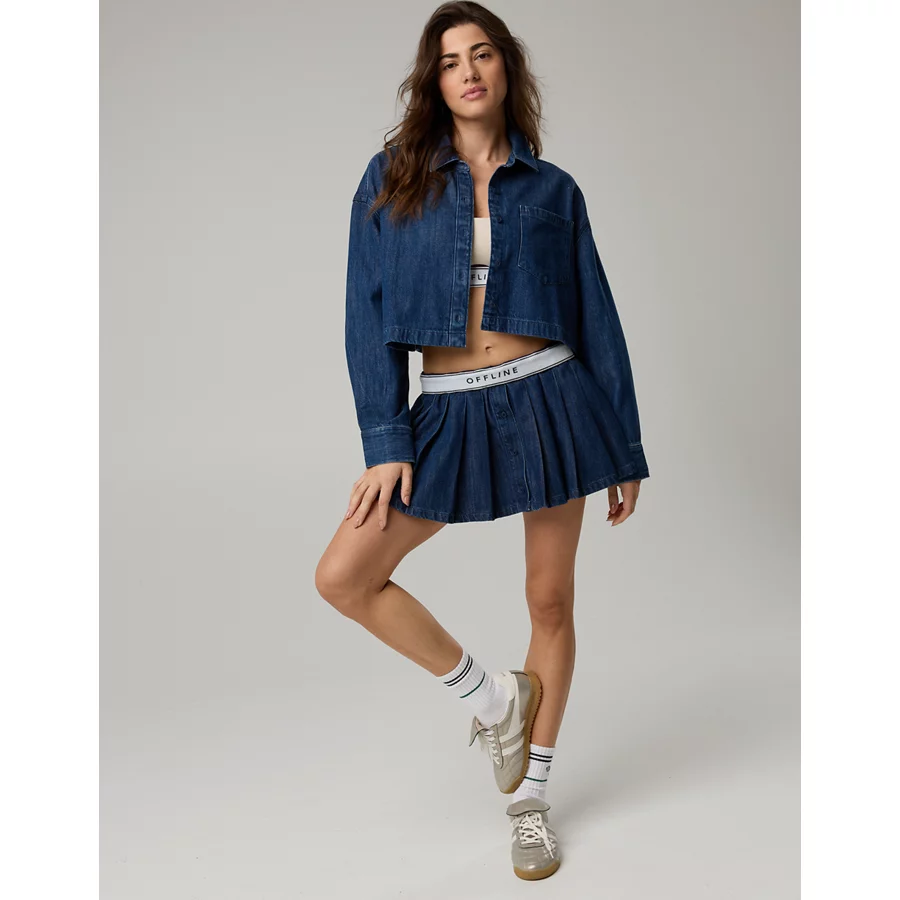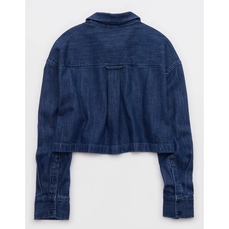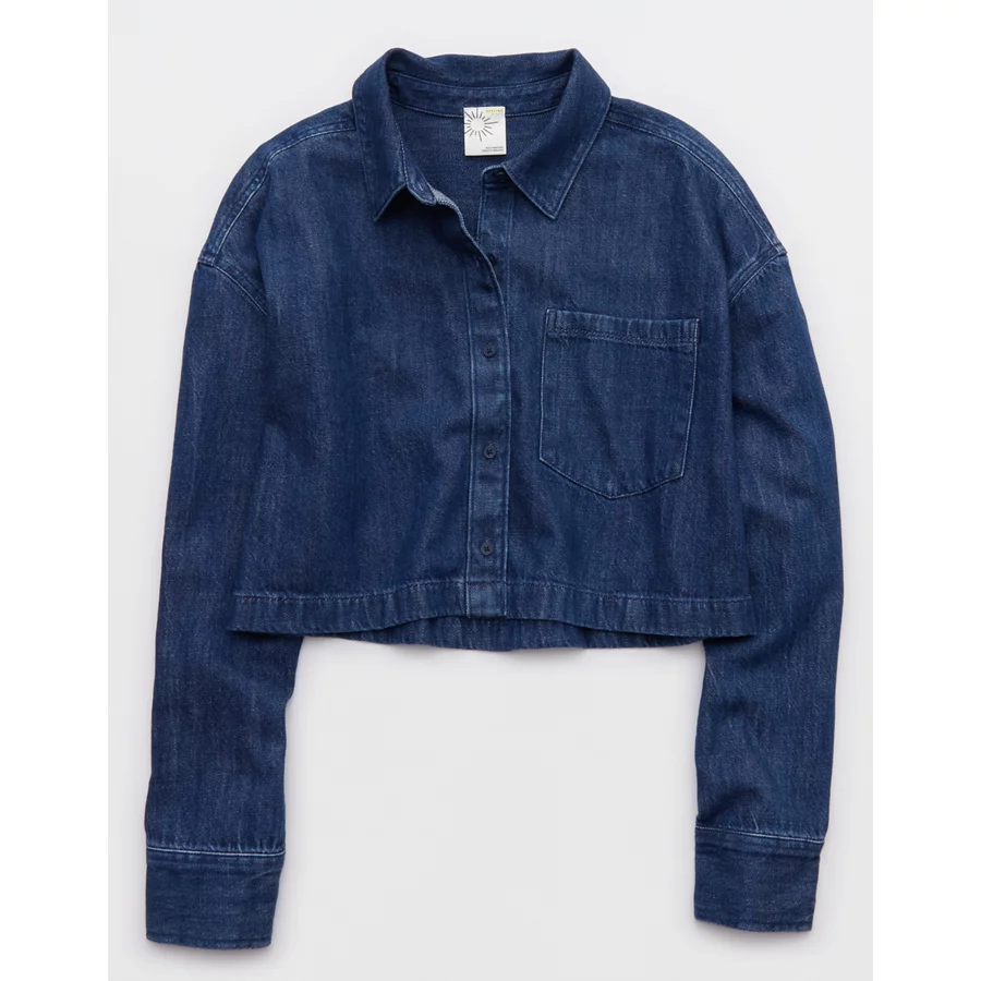 OFFLINE By Aerie Cropped Button Up Shirt – Rocky Blue