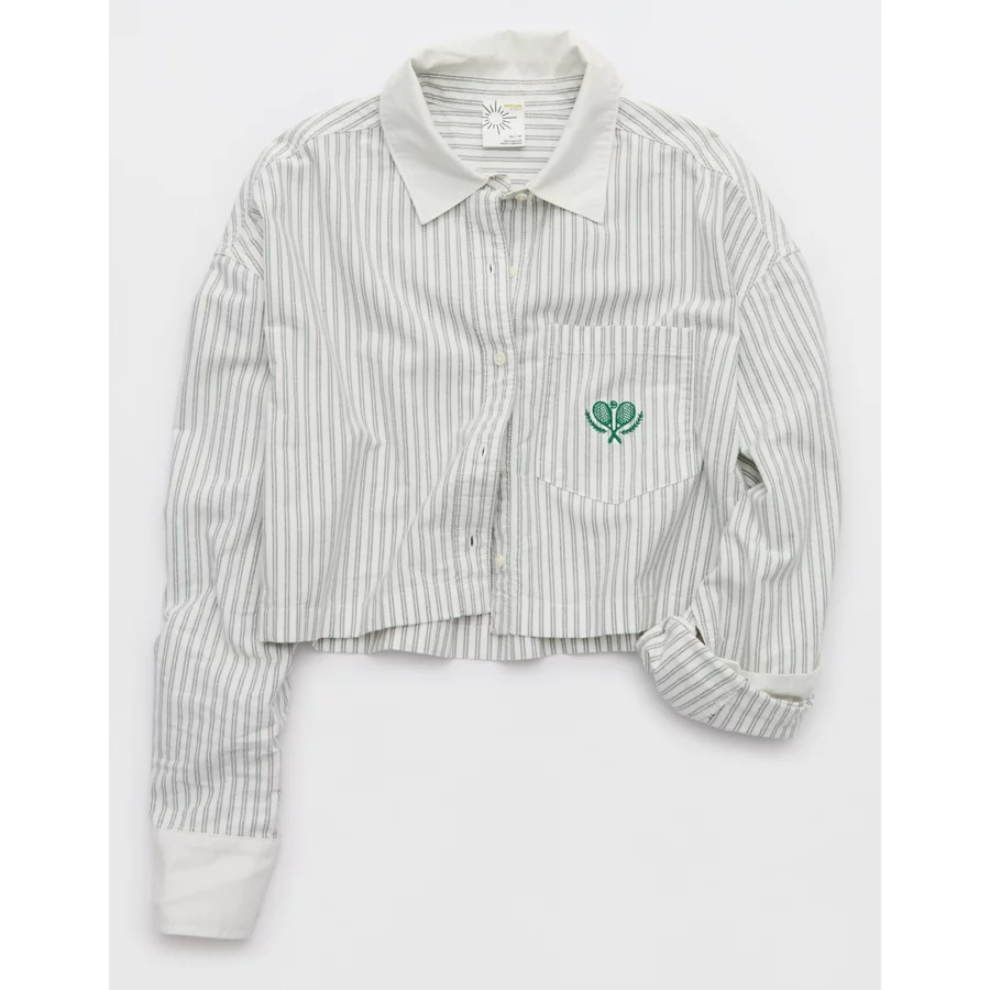 OFFLINE By Aerie Cropped Button Up Shirt – Soft Muslin
