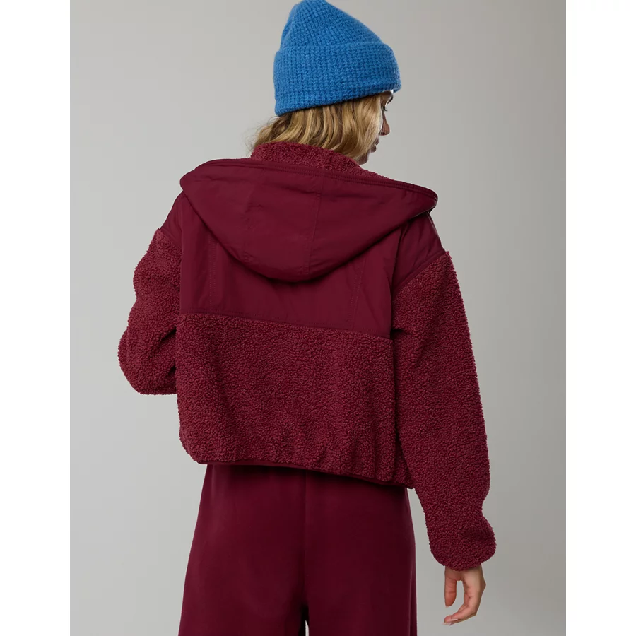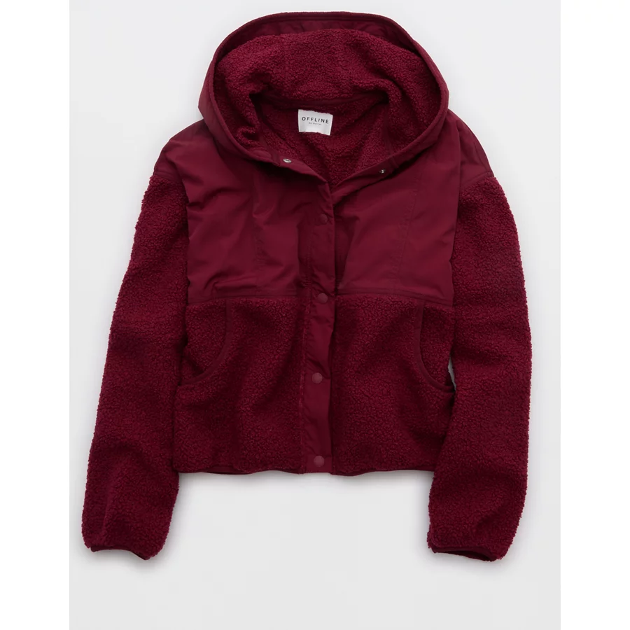 OFFLINE By Aerie Fluff Love Sherpa Jacket – Deep Cherry