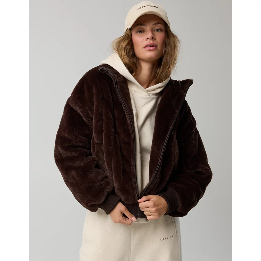 OFFLINE By Aerie Fur Full Zip Jacket – Deep Earth