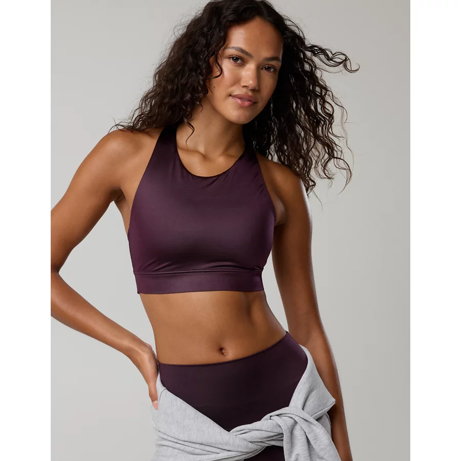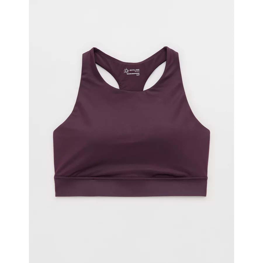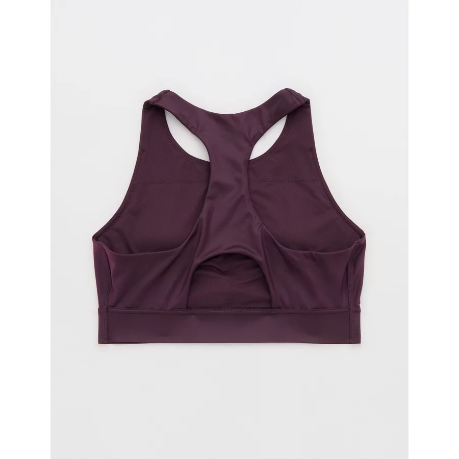 OFFLINE By Aerie Goals Gloss High Neck Sports Bra – Cool Berry