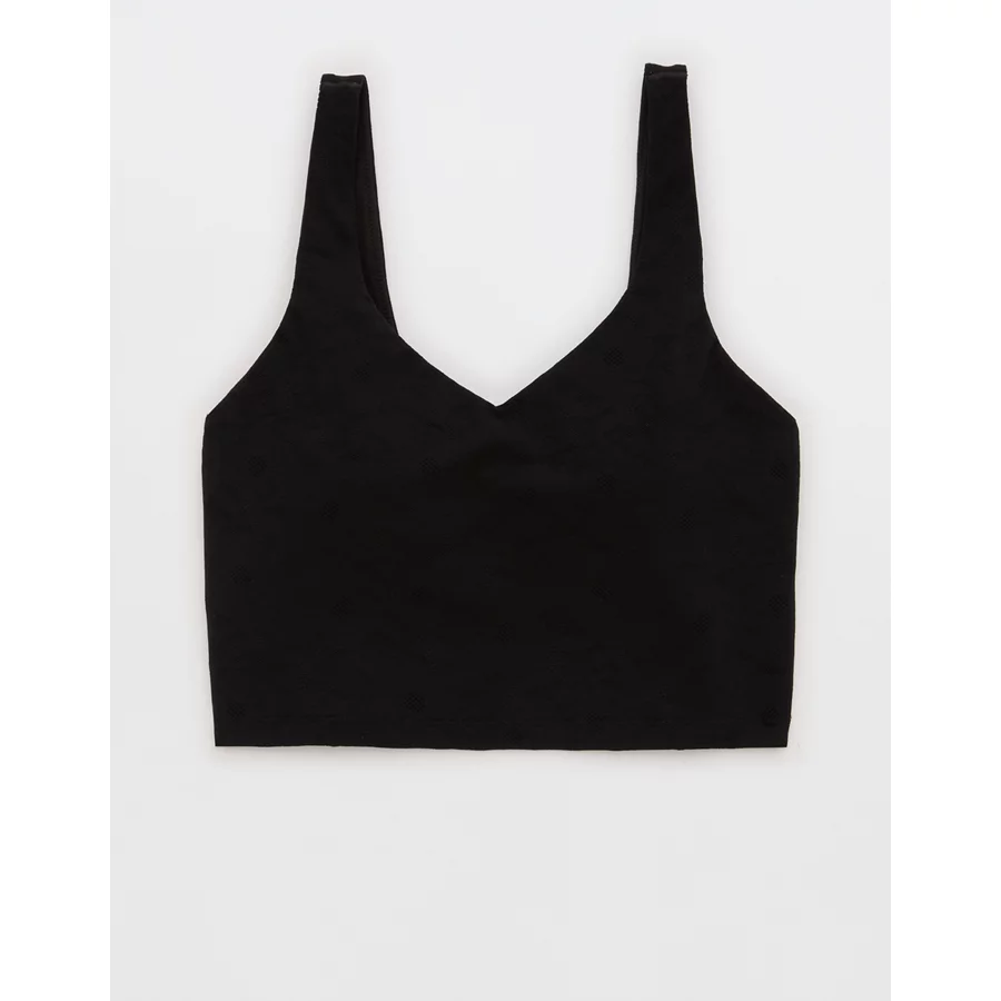 OFFLINE By Aerie Lace Low Key Longline Sports Bra – True Black