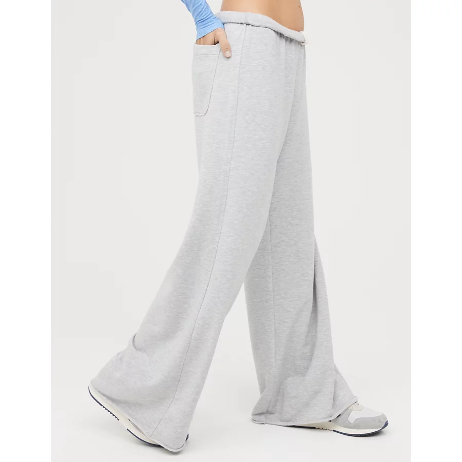 OFFLINE By Aerie OTT Fleece Super Wide Leg Pant – Medium Heather Gray